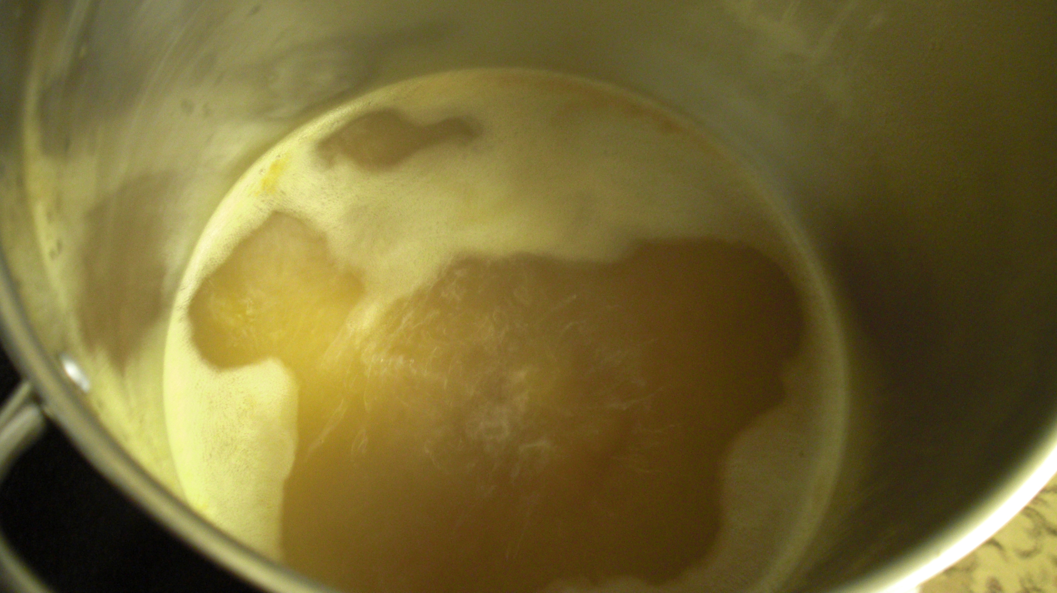 Let the cider boil for about 15 min. Once you have boiled the cider for 15 min turn off the heat and cool down to room temp. At this point in time its probably good if you have a funnel. Funnel the apple cider with sugar in it into your 1 gallon glass jug.